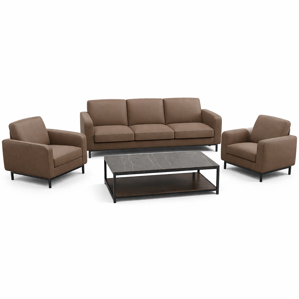 - Sofa und Sessel: Mikrofaser-Polsterung, Metallrahmen