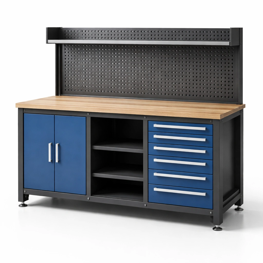 Komponenten: 2 Türen, 6 Schubladen, Lochwand mit Ablage