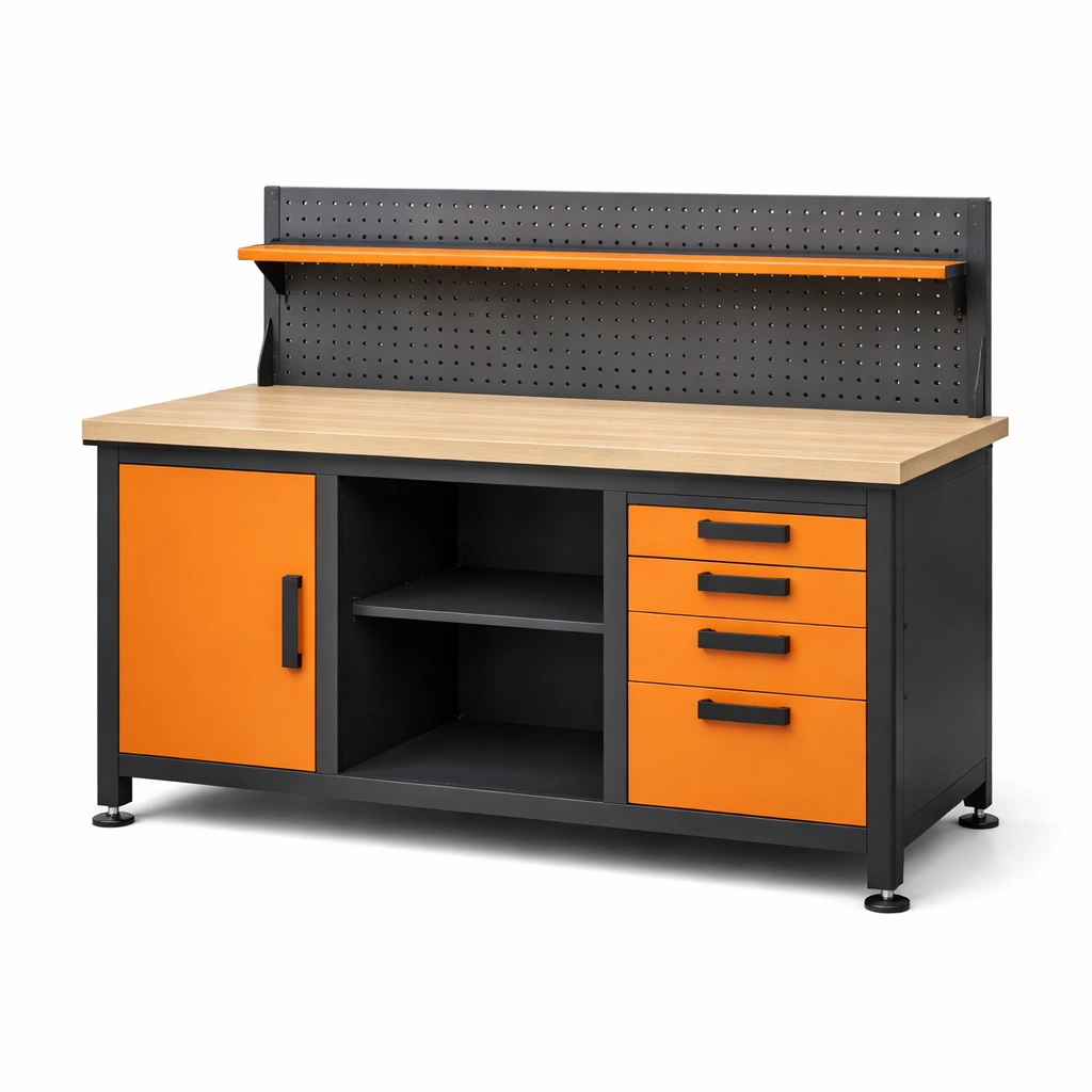 Werkbank metall holz mit schubladen und lochplatte